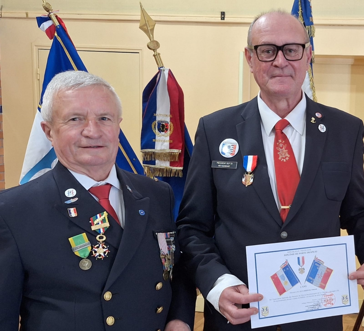 Madame Arlette TRIMAILLE Déléguée pour le Morbihan est venue en compagnie de Jean-Claude CHAMPION Chancelier national (Créateur du monument OPEX de THEIX-NOYALO).